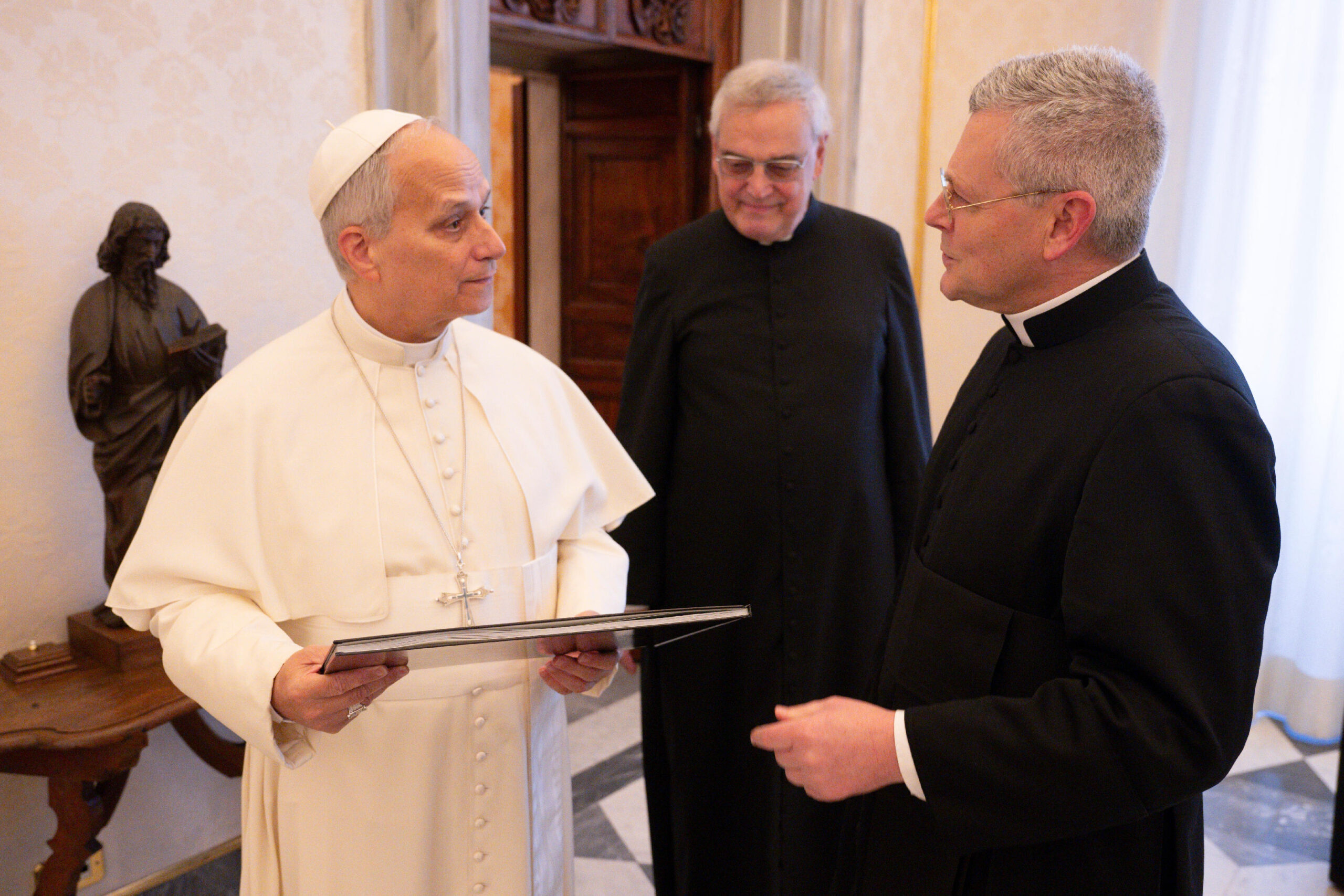 Following a request presented by the Superior General of the Priestly Fraternity of St. Peter, Pope Leo XIV received Father John Berg in private audience at the Vatican on Monday, January 19, 2026. He was accompanied by Father Josef Bisig, one of the founders of the Fraternity, former Superior General, and current Rector of Our Lady of Guadalupe Seminary in Denton, USA.